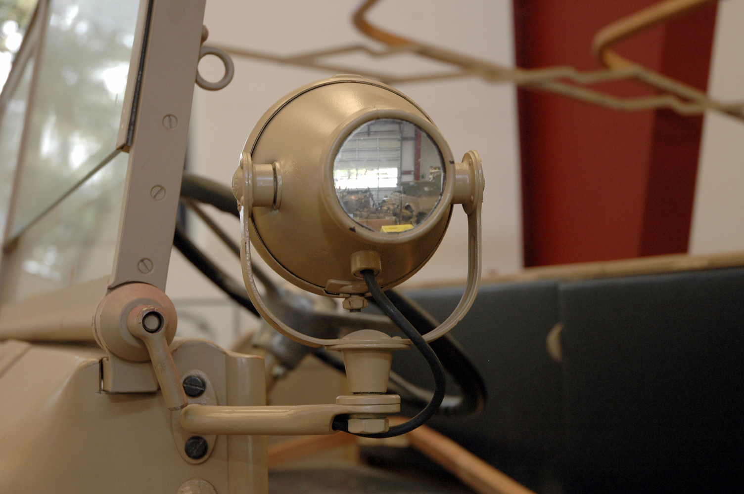 The rear of the spot light also acts as a rear view mirror for the driver.