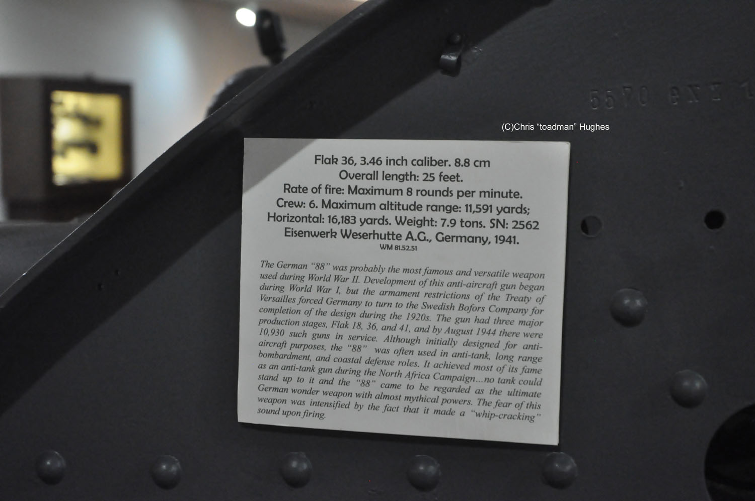 This 8.8cm Flak 36 was photographed at the Virginia War Museum in Newport News, VA in June 2013.