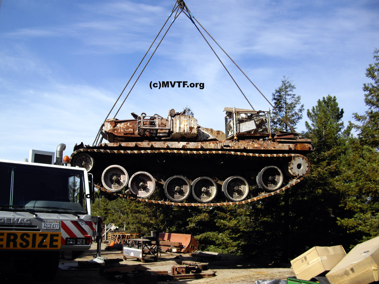 Due to demands from Jacques Littlefield's widow in November 2009, the Military Vehicle Technology Foundation decided to move it's restoration shop to other parts of the Foundation's property. This enormous undertaking was completed in mid-December 2009. It involved moving numerous vehicles from the shop to other parts of the property along with cleaning out numerous tools and parts from the large shop building and relocating to other buildings. A move such as this does not come cheap. If you'd like to help the MVTF, please visit the MVTF Support page to make a tax deductible contribution. The move does not change the status of the collection. Tours are still be conducted every weekend by appointment only. For tour information, please visit the MVTF Tour page for more information. Thanks for your support!